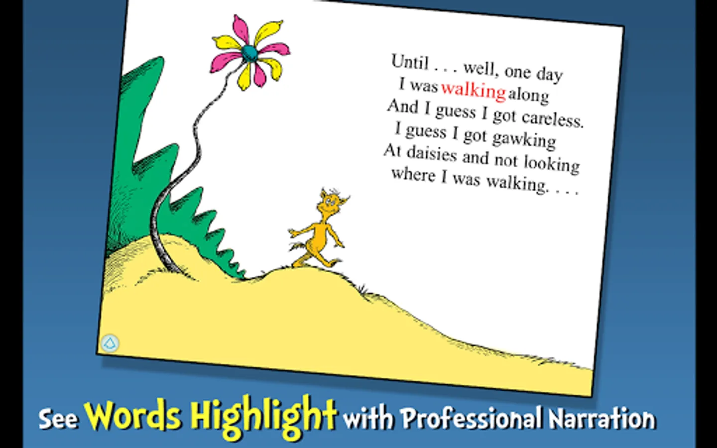 Join a classic Dr. Seuss character in this interactive book app as he encounters an array of trouble on his journey to Solla Sollew! Explore pictures, learn new vocabulary, and follow along with three fun ways to read! Will he ever escape his troubles and get to Solla Sollew?