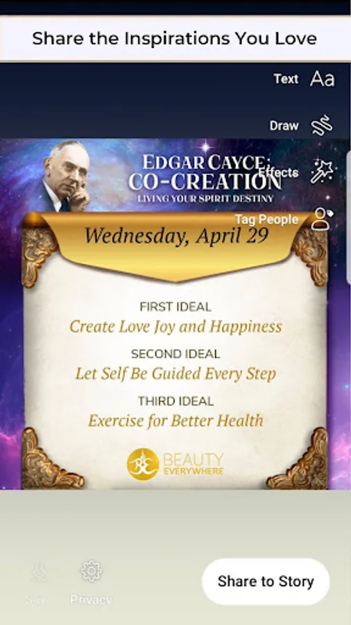 This App draws from hundreds of concepts and ideas contained in the Edgar Cayce readings dealing with each individual’s capacity to change her or his life for the better physically, mentally and spiritually. Compiled by Kevin J. Todeschi, Executive Director & CEO of the Cayce work, further information about Edgar Cayce’s A.R.E., as well as activities, materials and services is available at EdgarCayce.org.