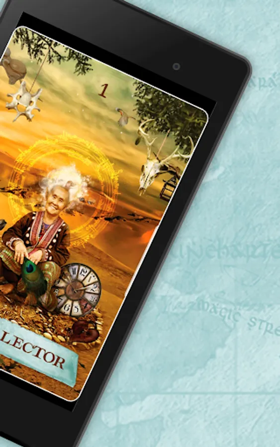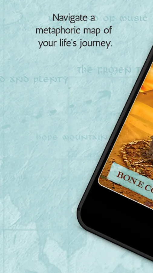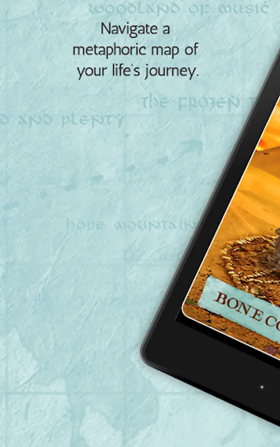 The themes of the 54 cards in this app represent some of the places you’ll visit, the conditions you may encounter, and the allies and challengers you’ll meet as you navigate a metaphoric map of your life’s journey.