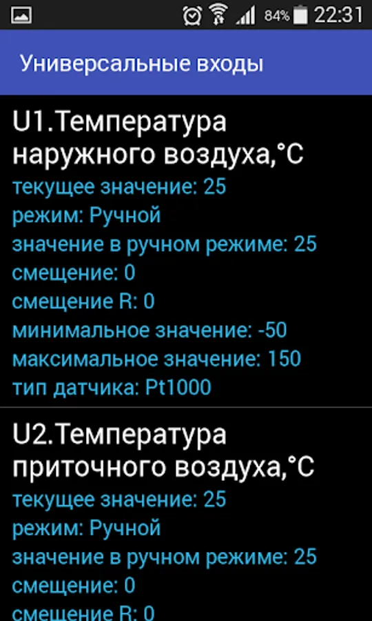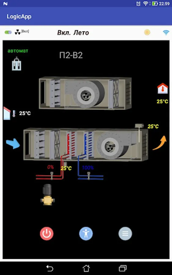 This application is a mobile client for process control using OTLogic universal controllers. Scope: systems of ventilation, heating, conditioning and others. Through the Internet or local network.