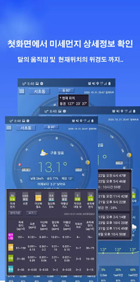 -Location: Used to inform users of the weather & fine dust information of the current location