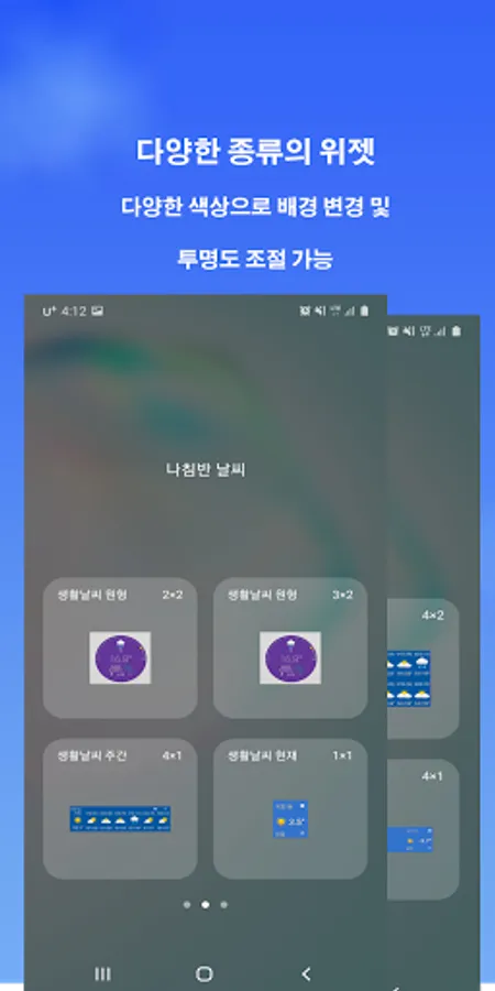 -Provides weather and various style widgets (1x1, 2x1, 4x1, etc.)