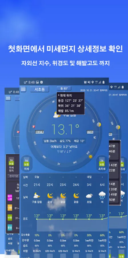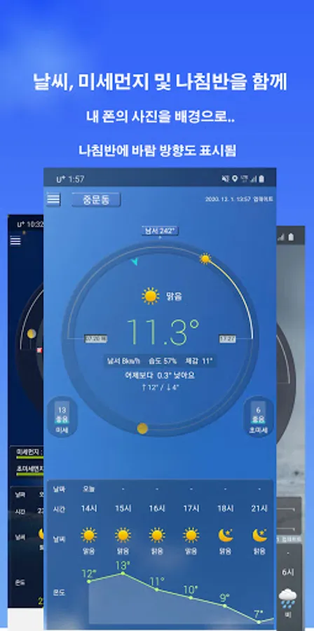 -You can check the weather, fine dust and compass on the first screen at once.