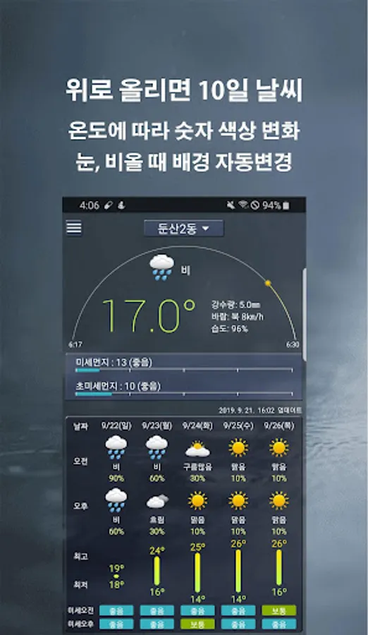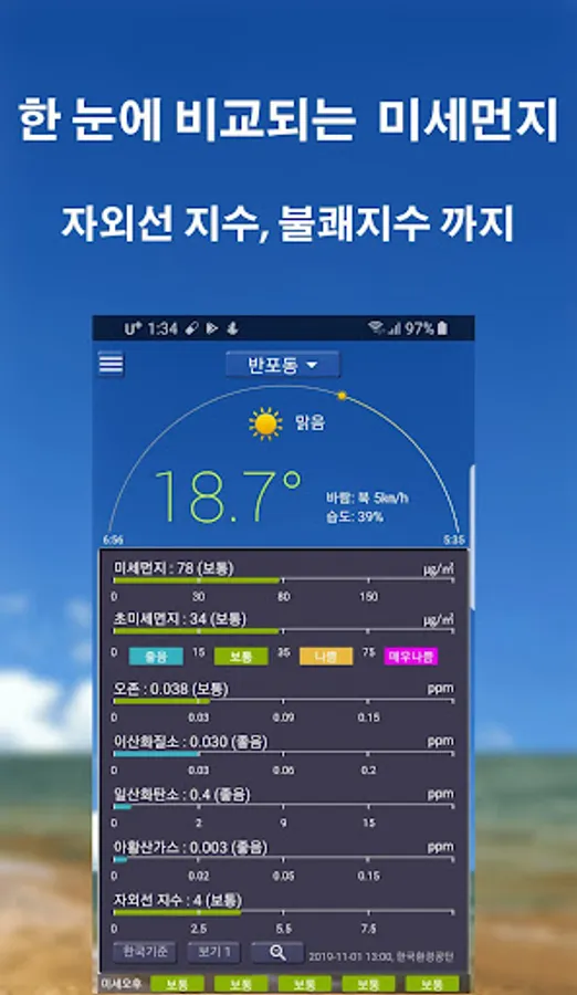 -Provides weather and fine dust of Air Korea.