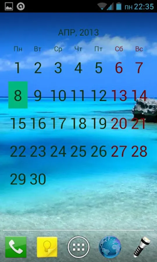 * Start Google Calendar by tap on cell (Android 4.x);