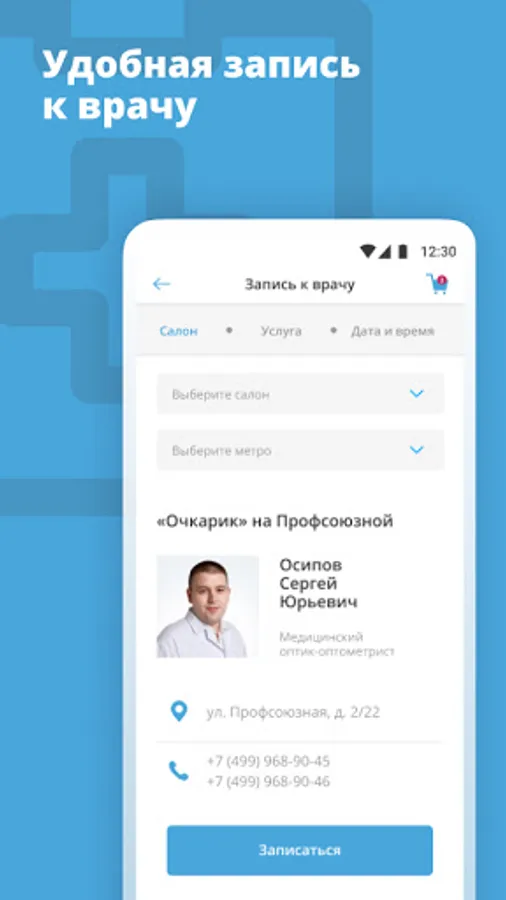 ● Make an appointment with an ophthalmologist at a convenient time for the selection of corrective glasses or contact lenses. Find an optics salon "Ochkarik" near the nearest metro station.
