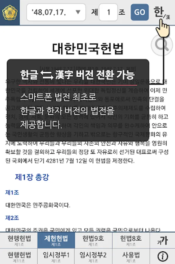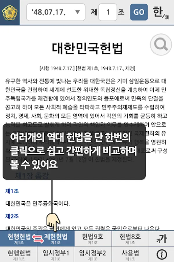 그러한 가치를 온 국민이 함께 이뤄가길 소원하는 마음을 담아 대한민국 smart 헌법앱을 무료로 배포합니다.