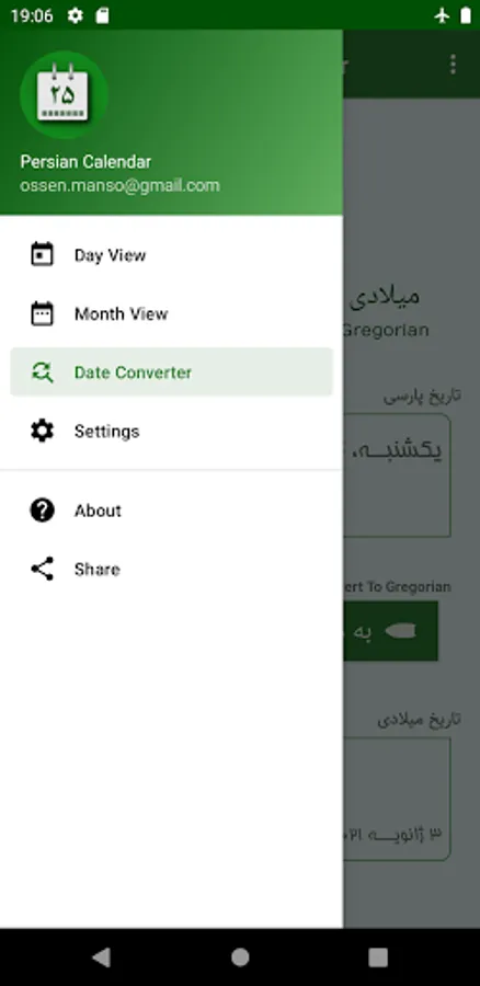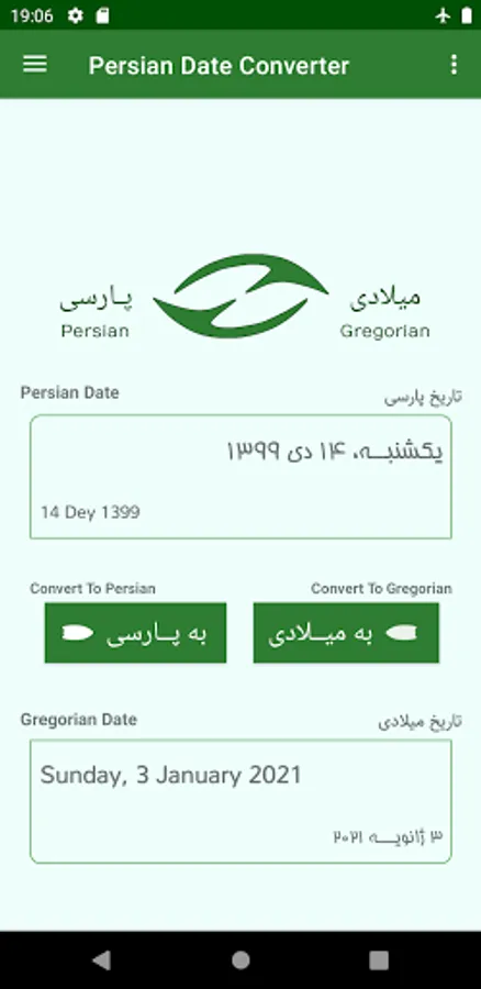 Date Converter utility, provides conversion of any date, from Persian to Gregorian (Miladi) and Reverse.