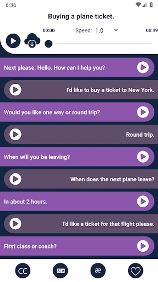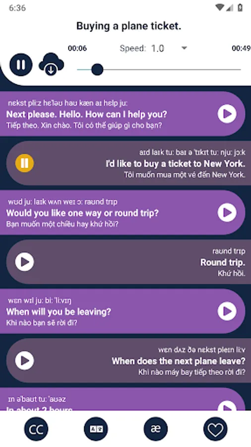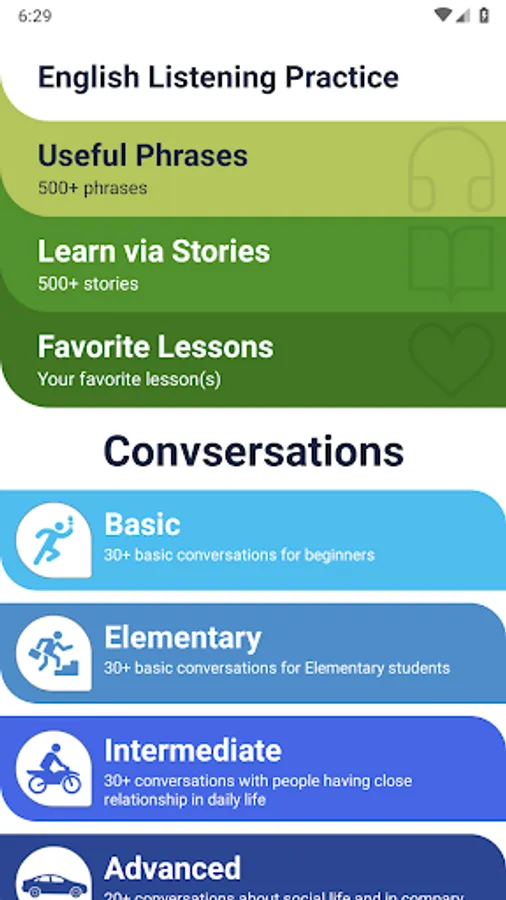 The app contain English lessons translate into 46 languages with audios and pronunciation.