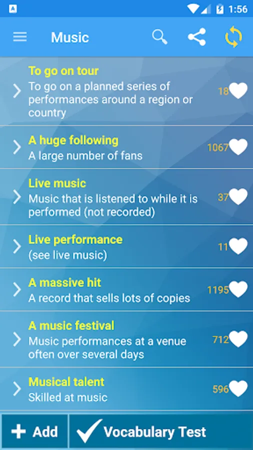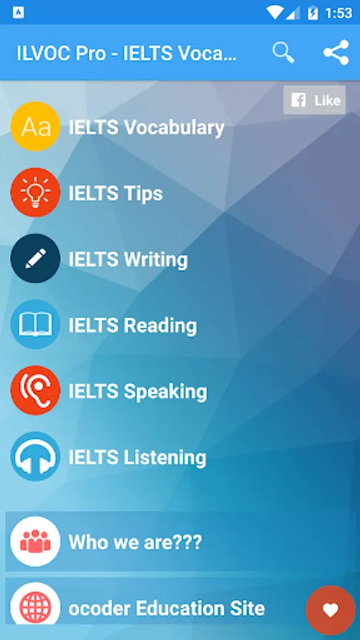 IELTS, or International English Language Testing System, is an international standardized test of English language proficiency. Being able to use a rich vocabulary is a major advantage in the IELTS and will certainly help you get a higher score. It will also be beneficial in your academic, personal and professional life. This app will help you achieve your goal more efficiently.