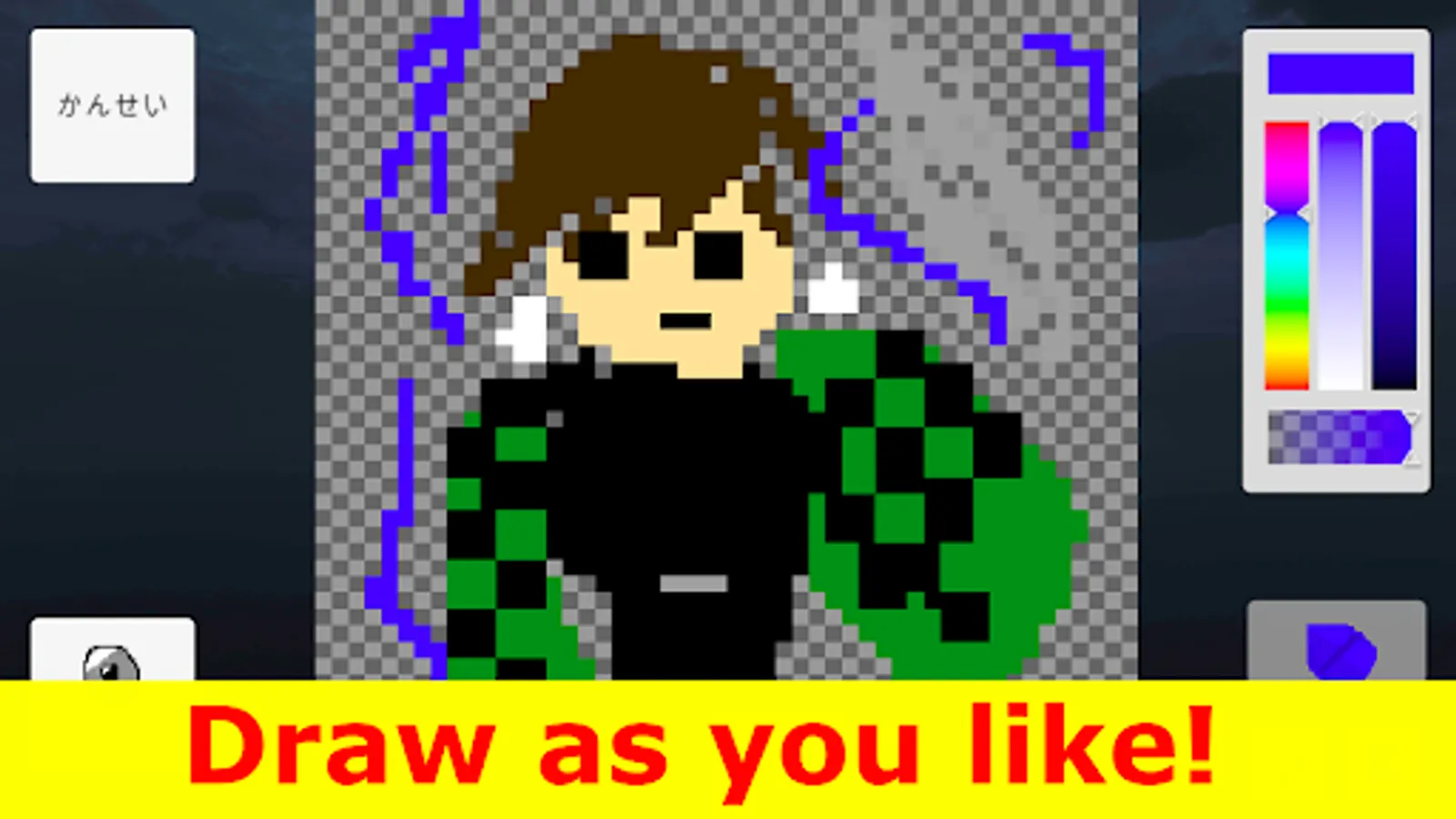 The characters you drew will fight. You can also capture camera images. Once you have a strong character, aim for the top ranking in the world in online battles! The strength is decided according to the character you drew! You can draw a hero with dots, or you can scan a scribble. Music: Maoudamashii (https://maoudamashii.jokersounds.com)