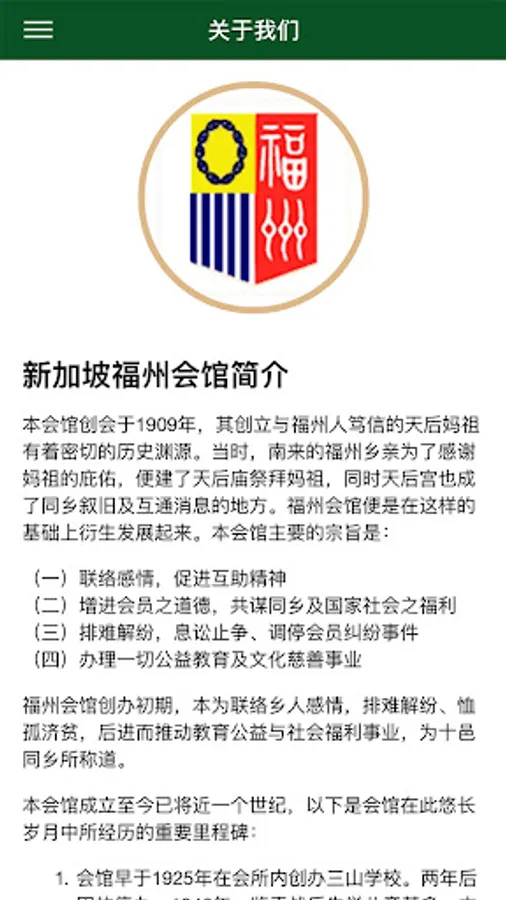 Founded in 1910, the Fuzhou Clubhouse in Singapore is one of the seven founding associations of the Singapore Clan Association. Since its establishment, it has made positive contributions in promoting the welfare of the villagers, promoting the inheritance of traditional culture and education, and supporting the country's construction.