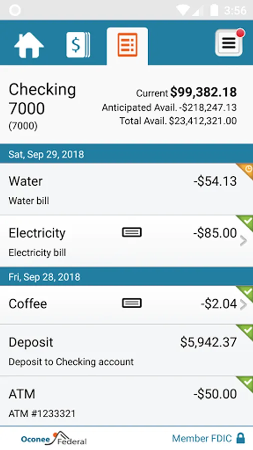 • Approve transactions scheduled through your Oconee Federal Mobile Business app, including fund transfers, ACH transfers and wire transfers