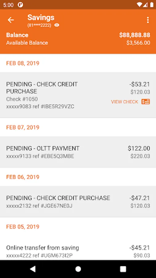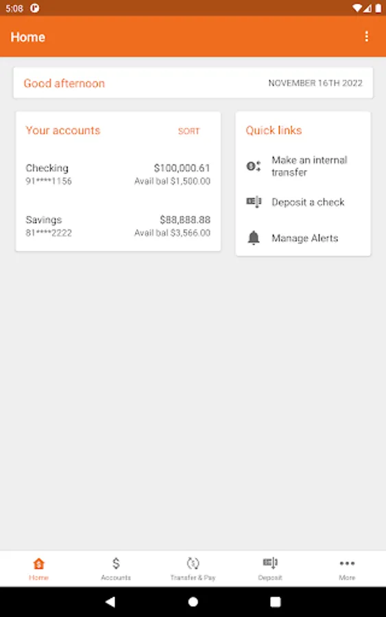 •Check your latest account balances, or search recent transactions by date, amount and check number.