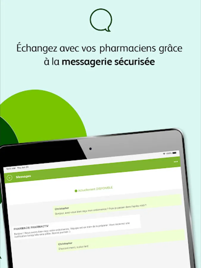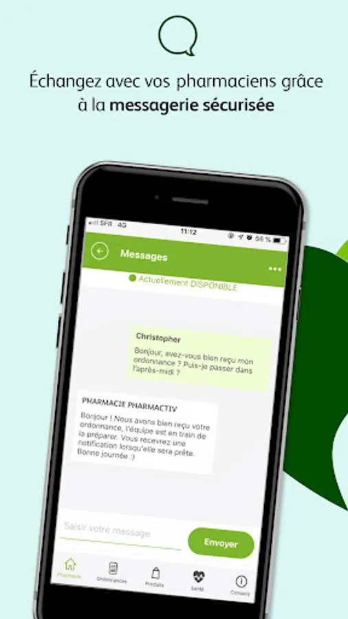 A specialized channel with your pharmacists: Exchange with your pharmacists in complete confidentiality on a secure messaging system, directly via the MyPharmactiv application.