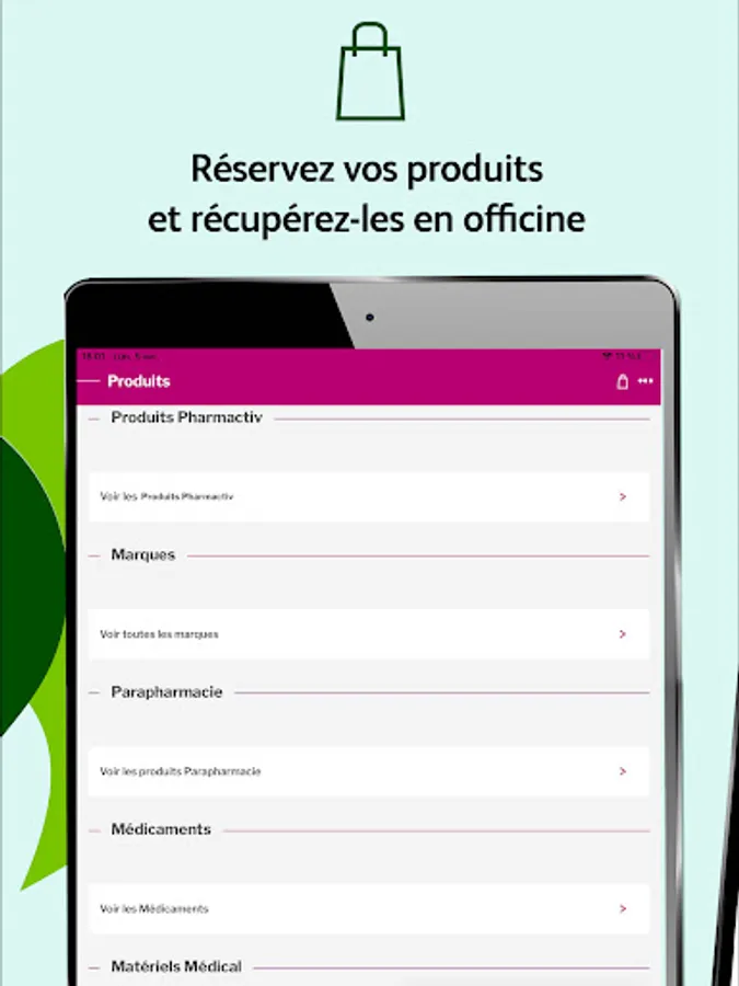 A wide range of products from the Pharmactiv network: Reserve your products from your pharmacies and collect them by Click & Collect directly from the pharmacy of your choice.