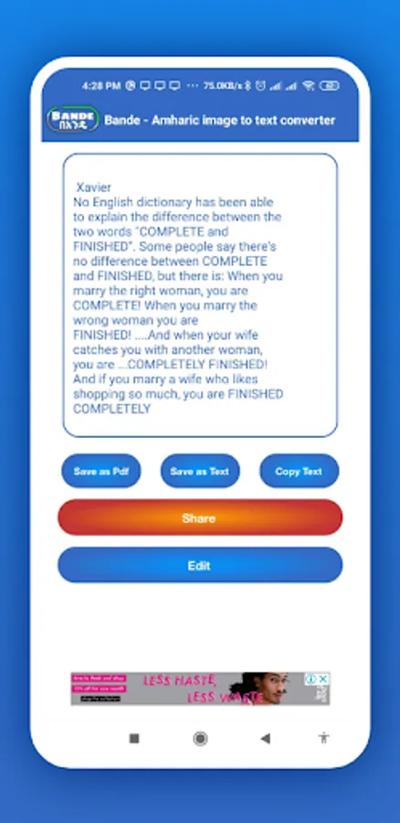 Bande Scan your data(image) within a second, save it for later use and edit your data too. Don’t worry Bande optical text scanner is here for you to solve your problem and save your time too. Just open the image to text, scan, it work within seconds.