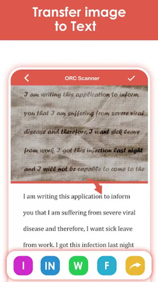This app will turn your smartphone into a very fast and convenient text scanner. It can automatically recognize the characters from an object, image, pdf, or a document and you can save the extracted text, edit it, share it, or save it.