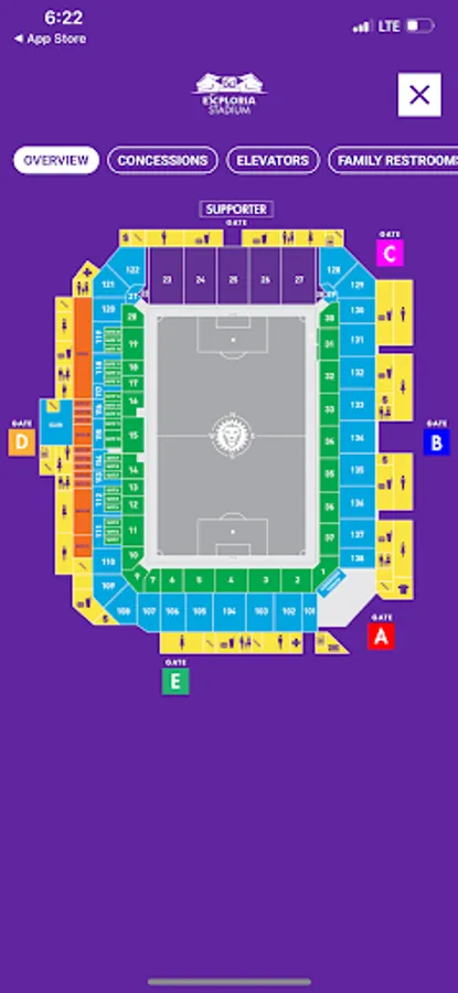 - Attending a match at Exploria Stadium? The app will help you find your way around, from gates, to restrooms, to Team Store or Food & Beverage concessions.