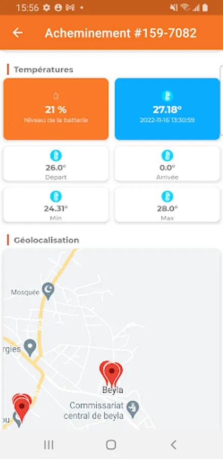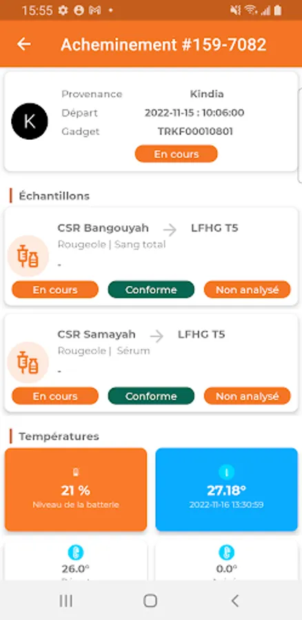 tracking medical samples (Ebola, Measles, Tuberculosis, etc.) by tracking GPS coordinates and temperature variations.