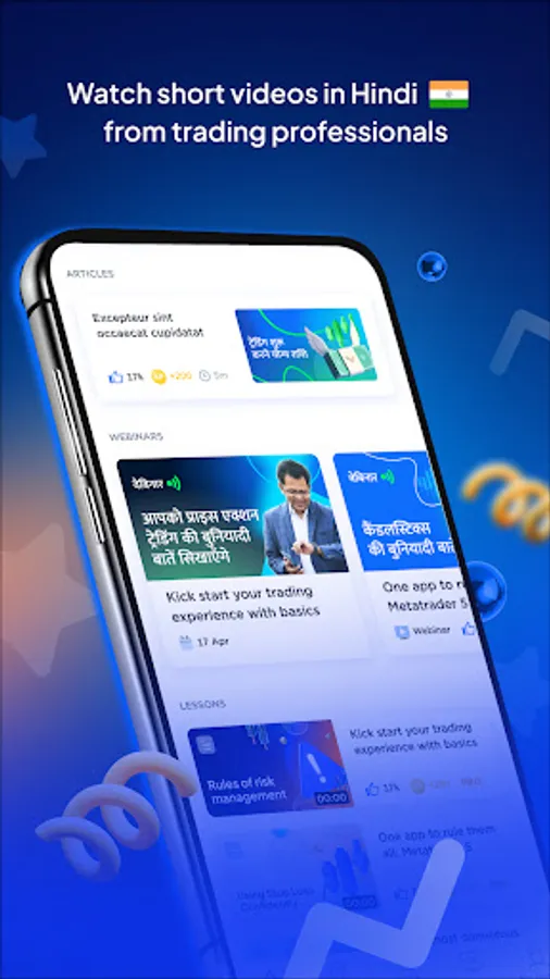 Your free educational courses in Hindi are full of engaging lessons! Novice traders use our learning app to master the learning process. Use our official learning app that has helped many beginners with mobile trading. Our educational courses contain video lessons on how to trade from experts. Learn the nuances of exchanges before you try our trading app.