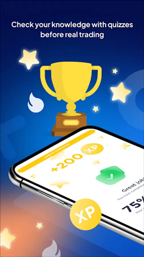 After using our trade app course, you're ready to try the market after a set of quizzes. Our videos will give you financial literacy, improve your skills, and help manage risks by providing market analysis enabling you to craft a strategy to start earning money.