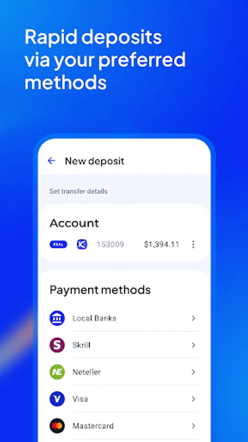 ● Manage transfers to your trading accounts via local banks or e-wallets