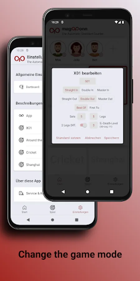 Save 3 different X01 tournament variants and change the order on the dashboard with drag & drop.
