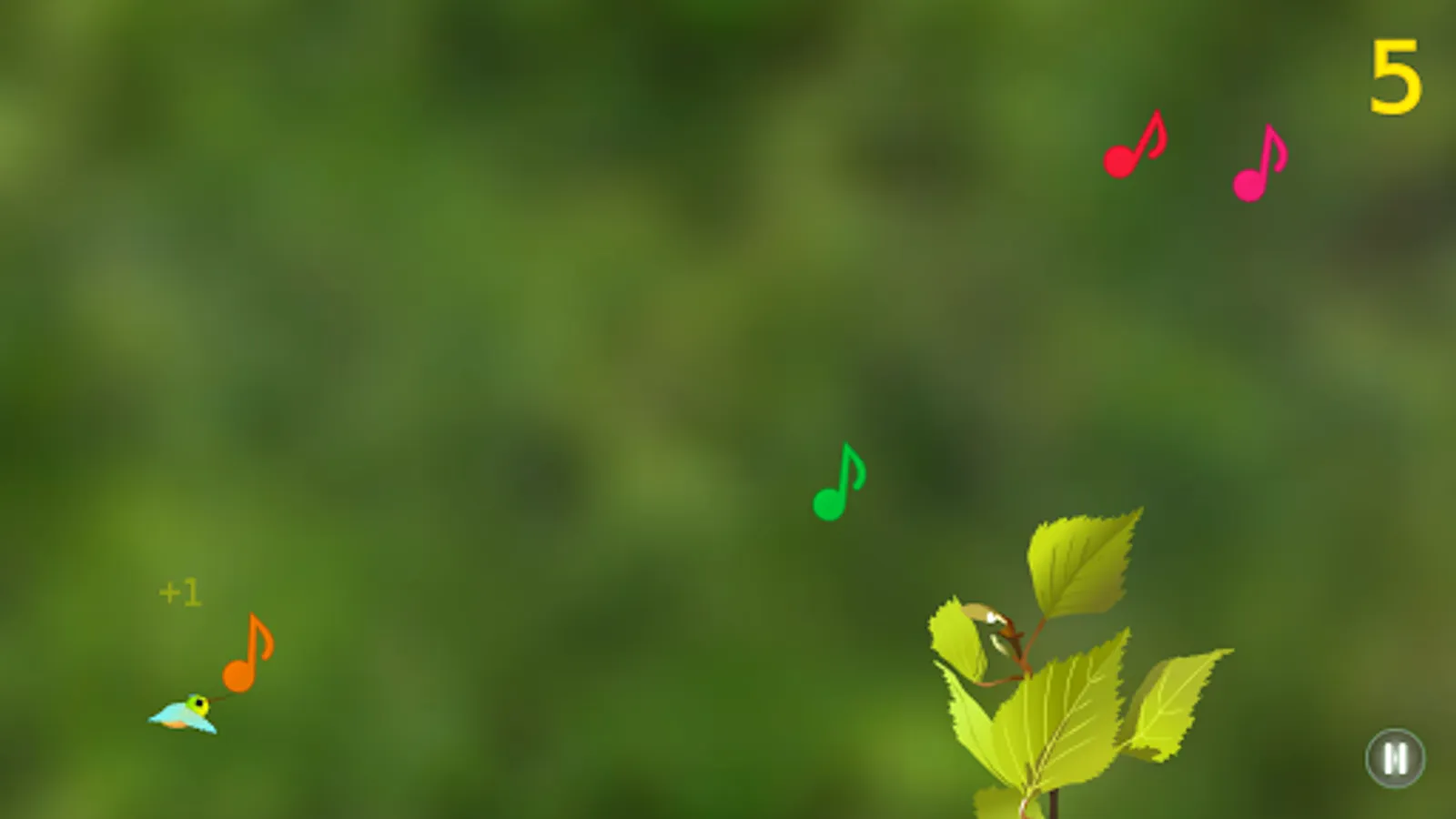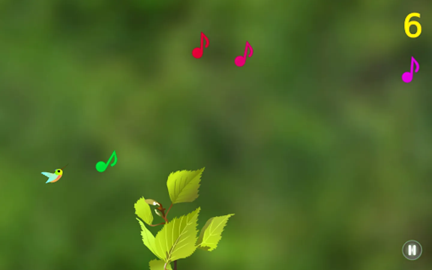 In this unique and addictive music game, guide your hummingbird through the forest to 1st place by collecting musical notes. Use your own voice and sing, whistle or hum high notes to move up and low notes to move down. Avoid flying leaves, branches and beach balls that will knock your hummingbird out of the sky. Get stunt bonuses for grazing leaves and collect stars for extra points!