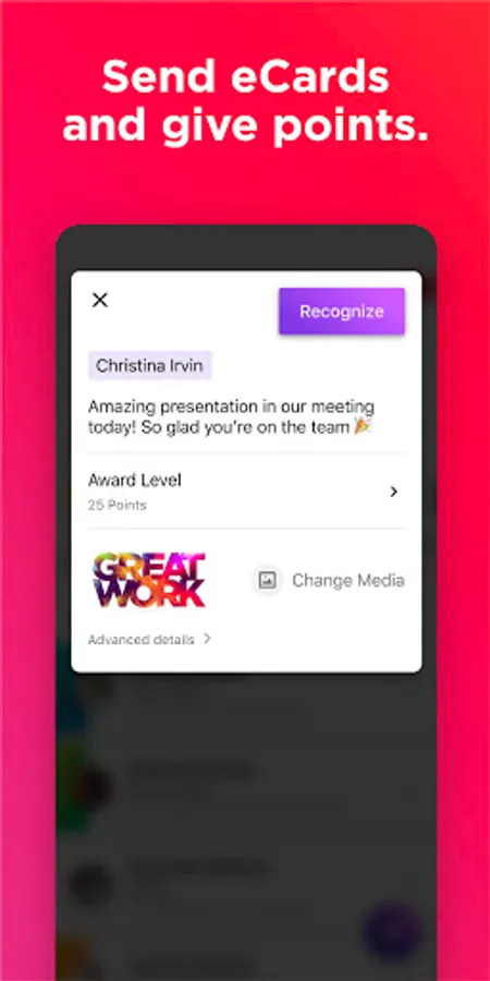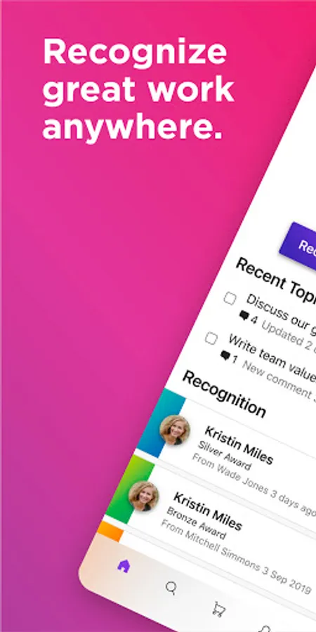 Once synched, your app will seamlessly reflect all the details of your desktop recognition program. But in the palm of your hand. It’s totally secure. And it makes employee recognition fast, fun, and easy.