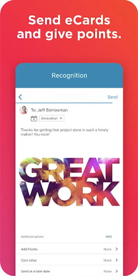 The Great Work app from O.C. Tanner makes recognizing great work easy. Whether you’re celebrating small victories or team triumphs, having the ability to send recognition at your fingertips is an essential part of a thriving workplace culture.