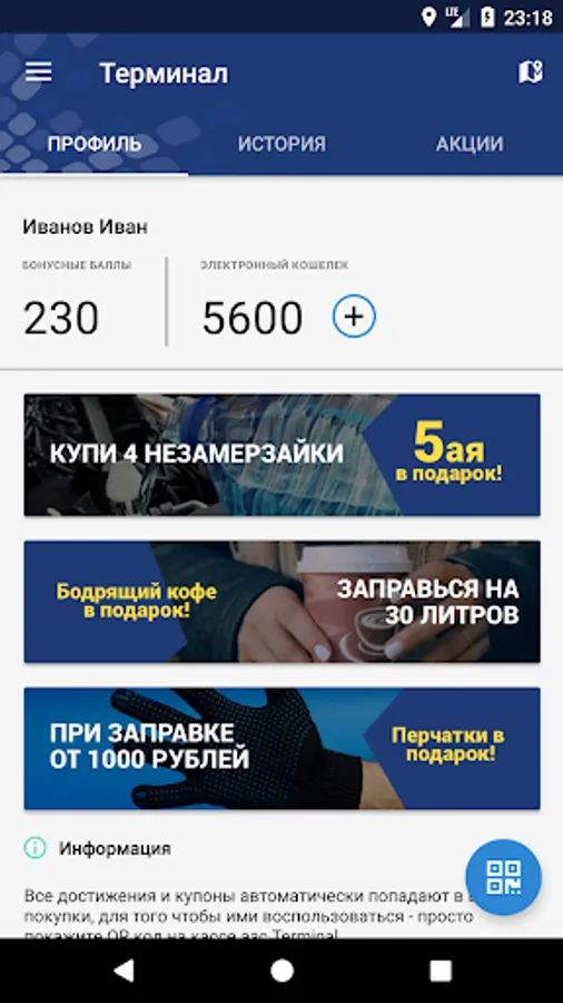 Do not forget to present the QR code of the application for each purchase of fuel and goods at the gas station of the Terminal network for the accumulation of bonuses. *