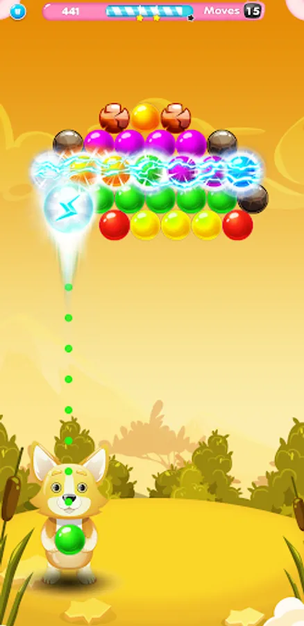3.Clear all the bubbles on the screen to level up, and try to get 3 stars on each level.