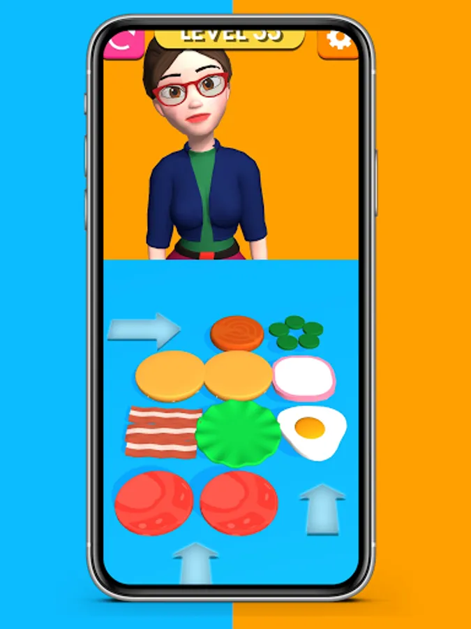 In this addictive puzzle game, your goal is to make delicious burger combining Burger buns with the cheese, onion, tomato, ham and other many ingredients toppings. As you complete perfectly different & delicious burger with more burger ingredients, which able to unlock thousands of levels. Make sure you make the customer happy while making perfect looking & delicious burger .