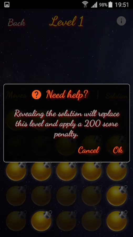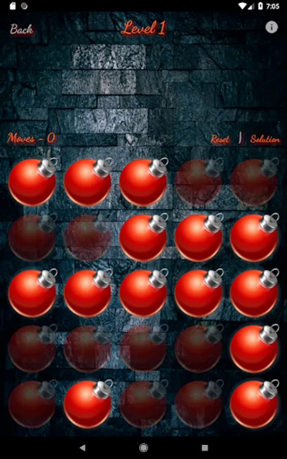 The app offers 80 different levels, unlocked and playable, each providing a solution, if you get stuck. Revealing the solution will apply a score penalty and will replace the level with a new one, ready to be played.