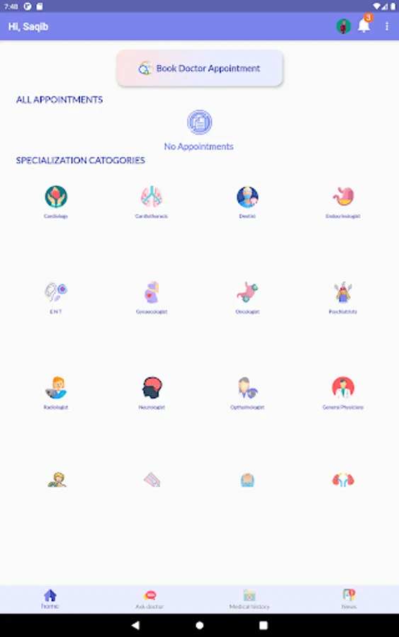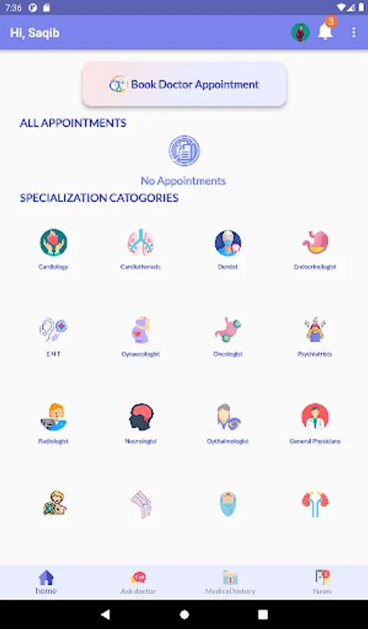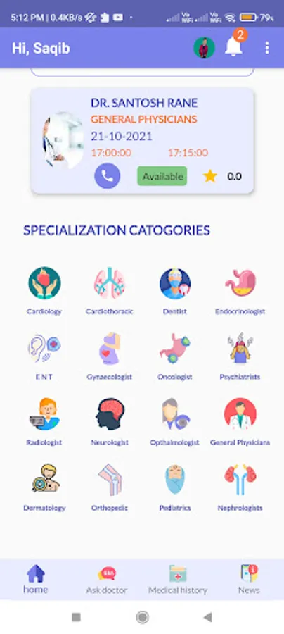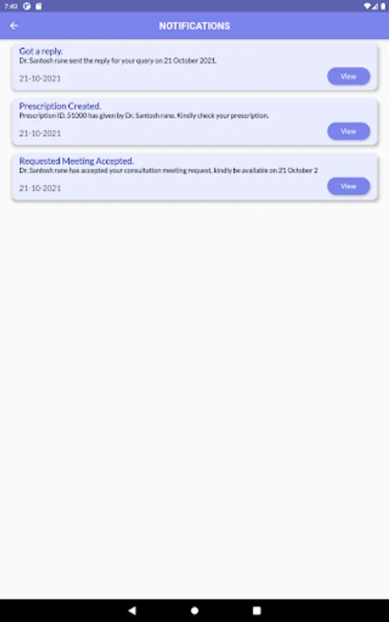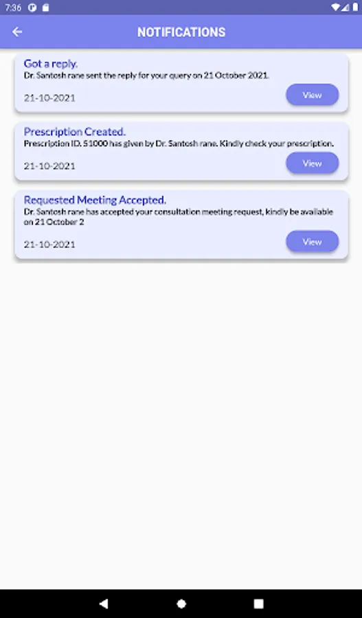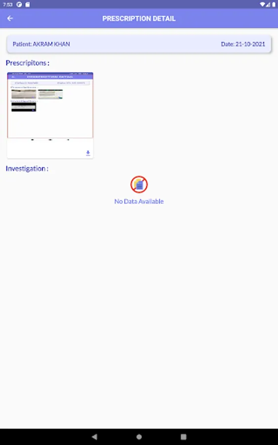 Patients can view all previous prescription and investigation reports by doctor name and date wise.