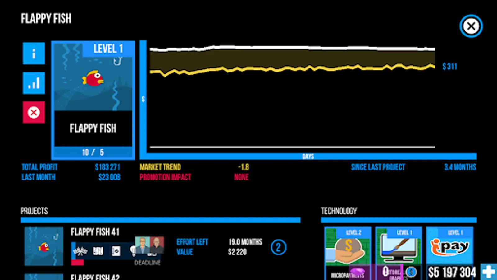 Employ employees, carry out dozens of projects and earn money on famous mobile games such as Flara Bimbo, Angry Fans or politically incorrect Race of Races. Pick right games and stay ahead of your competition to win the market. Think strategically, do not tap, like in real business.