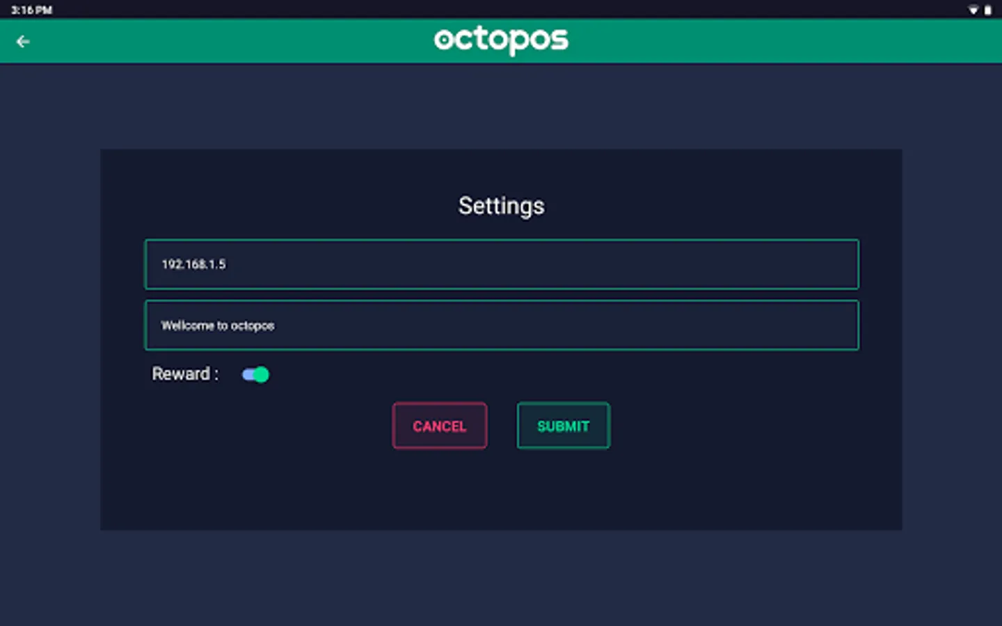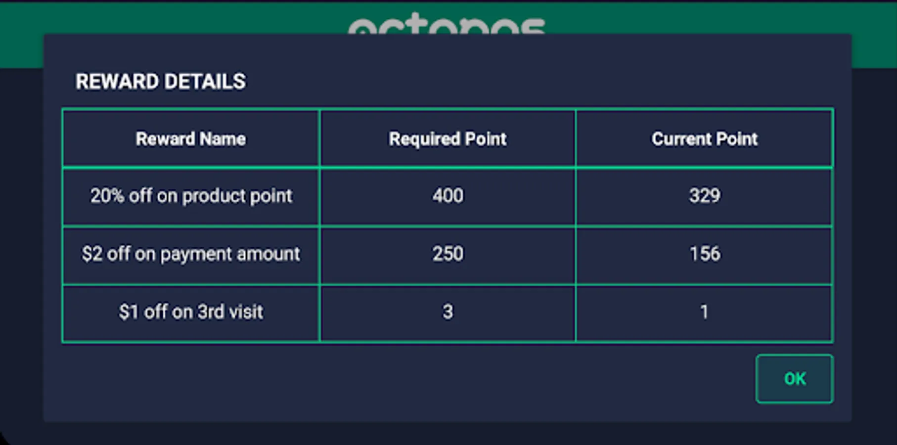 CDS is connected with octopos system that is tailored for Retail and Grocery to display products,balance and reward points details at customer side.