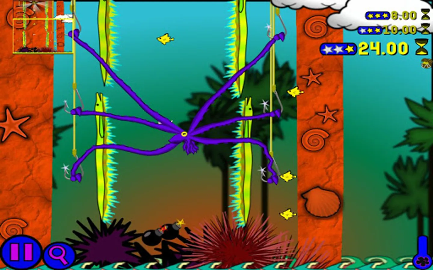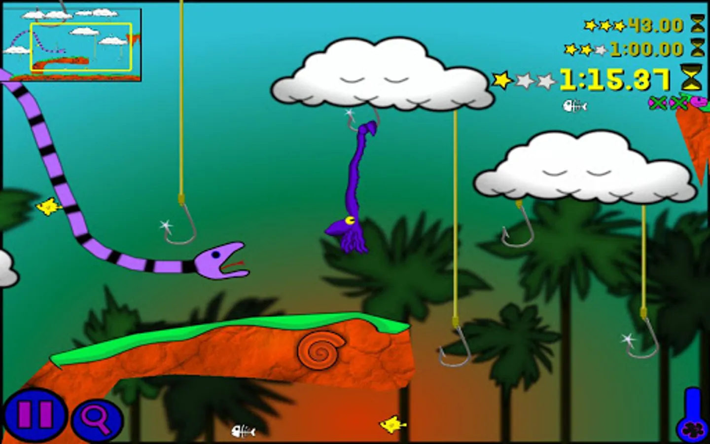 Fire your tentacles sky-high as you soar through the air, grabbing dangling hooks to avoid the likes of slithery electric eels, blowfish, and elusive water snakes. Challenge your mind, reflexes, rhythm, and instincts.