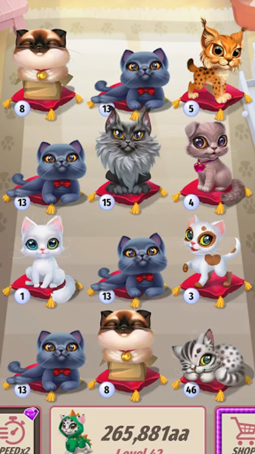 Choose which furniture๐ง to buy for you loved cats and get upgrades for that๐ฒ , so you can merge even faster ๐ and buy more furniture ๐ and more rooms ๐ and more cats ๐.