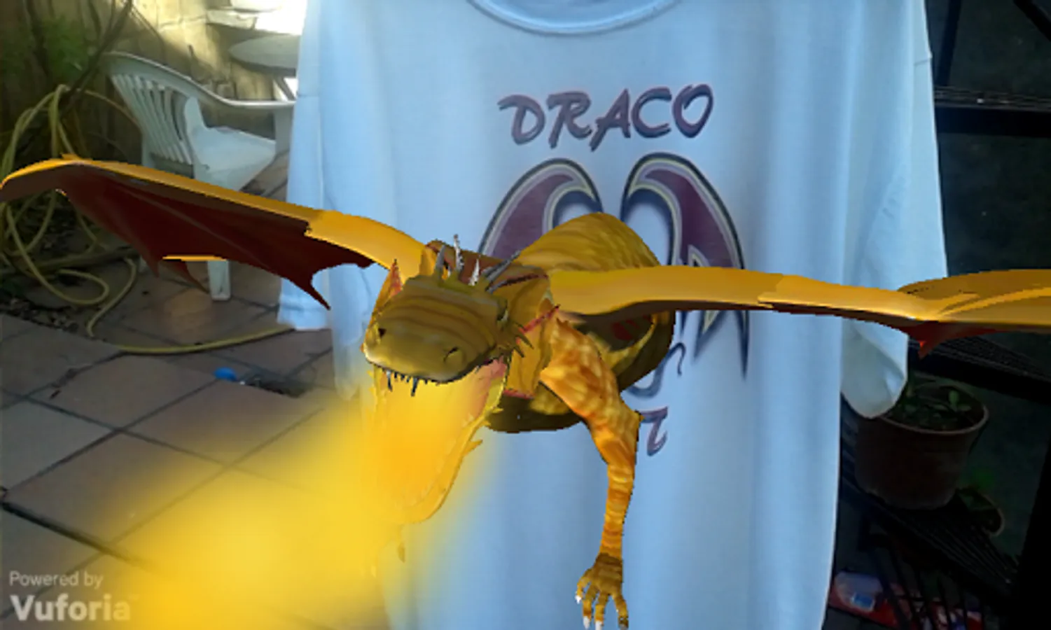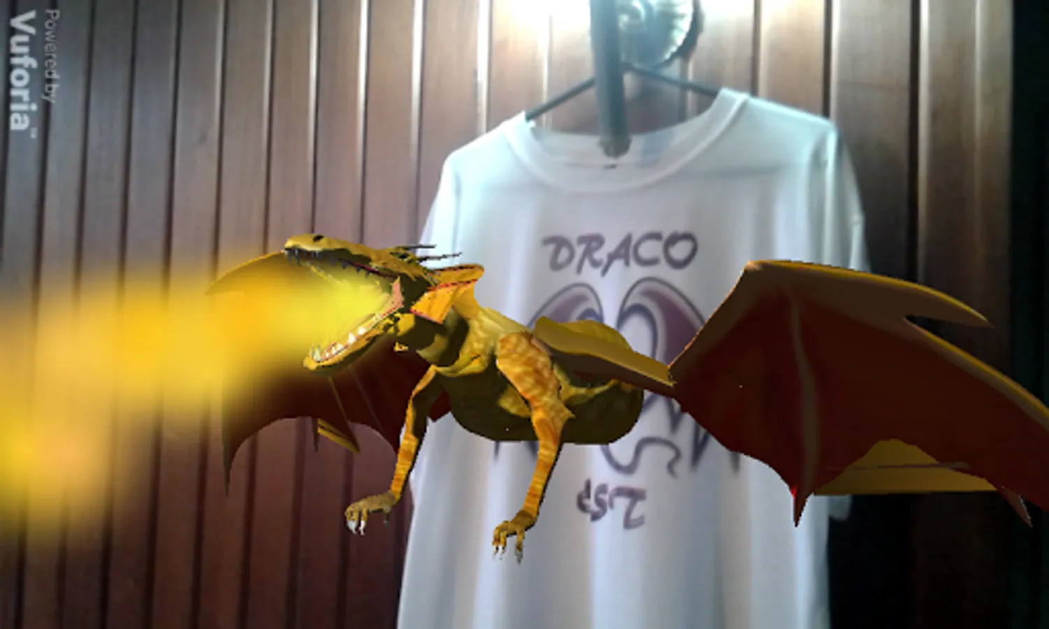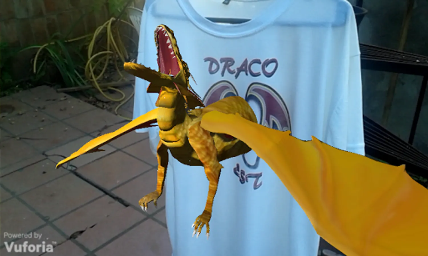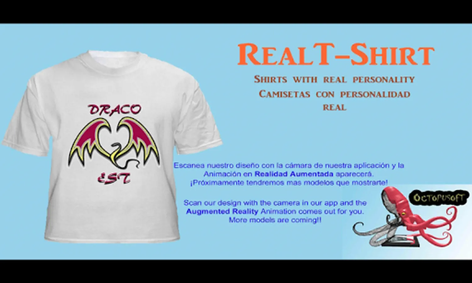 This is an application base in Augmented Reality, with a cool design you can print in T-Shirt or in any other format (or you can test it from your computer screen with the picture displayed), and when you aim with the application's camera, you will see a really amazing animation coming out from our design.