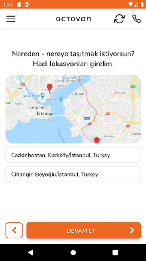 Octov while, you find a shipper who is directing the closest and most highly rated. Supplier's name, photograph, you can see the scores and the plate, you can follow the arrival of the carrier from the map for you.