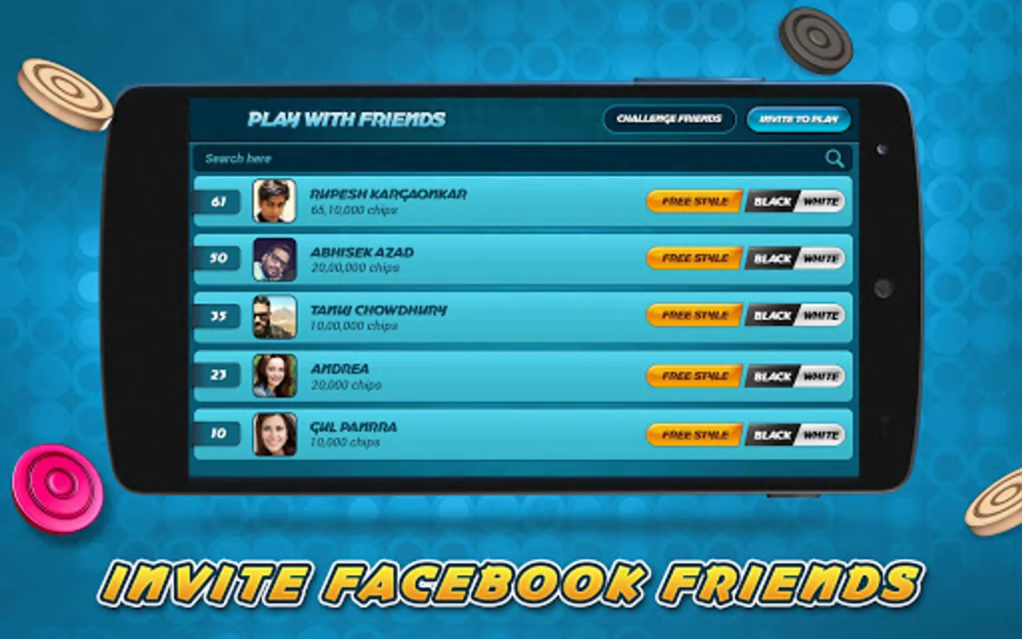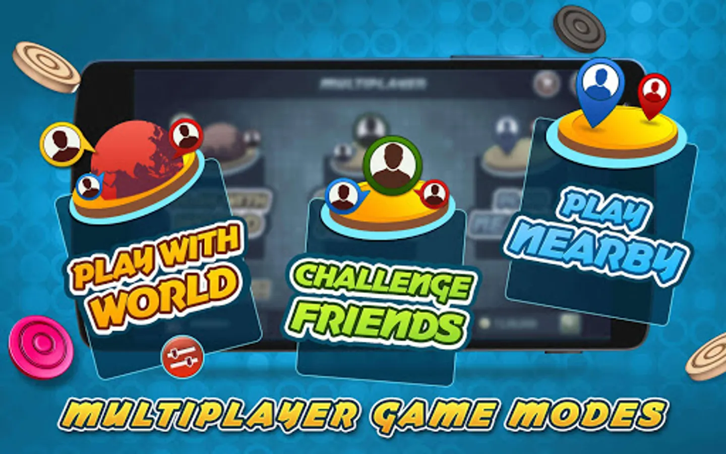 - Play Nearby – Beat the other near by real players to be the carrom king.
