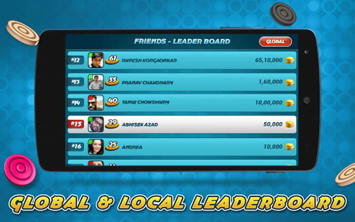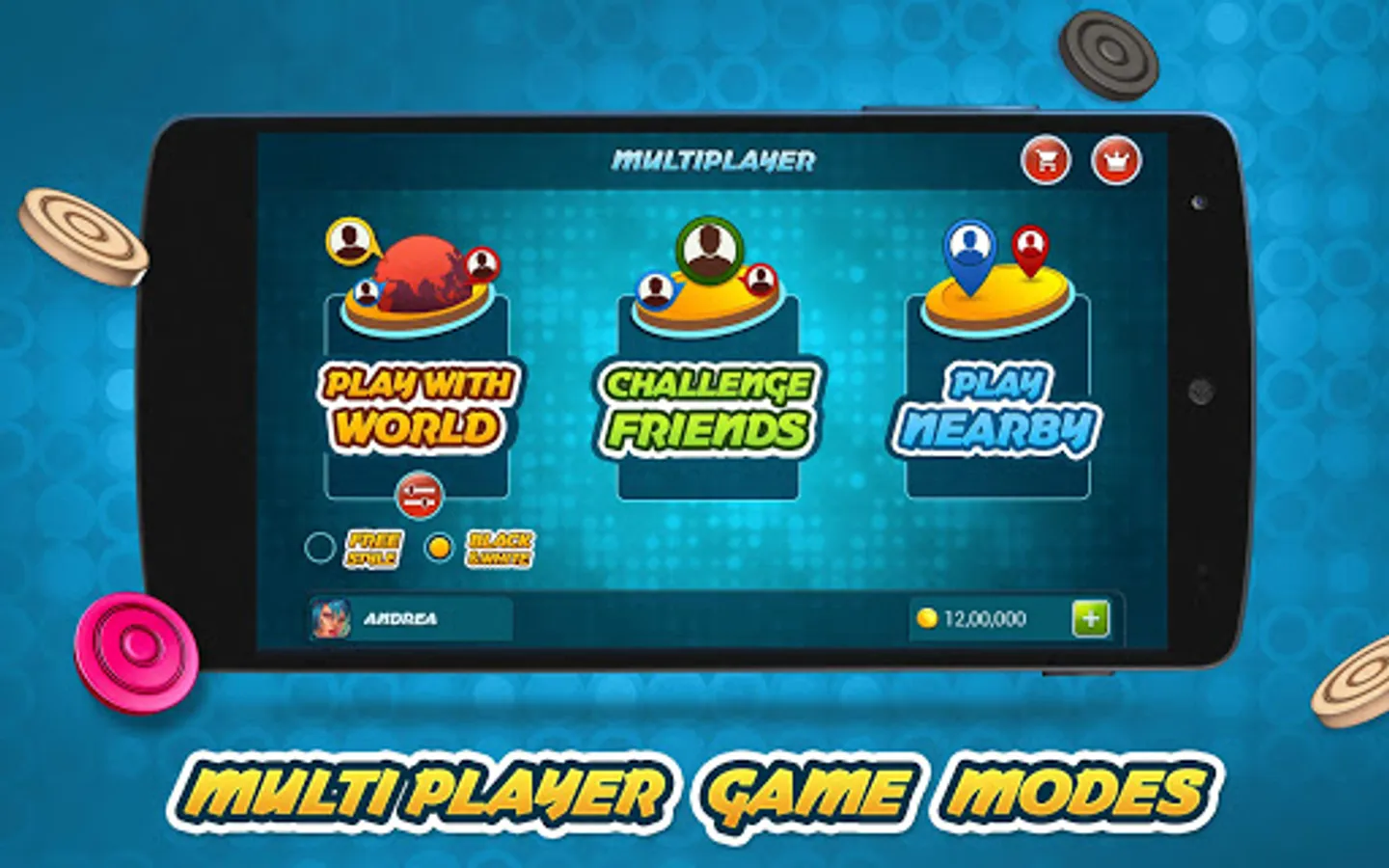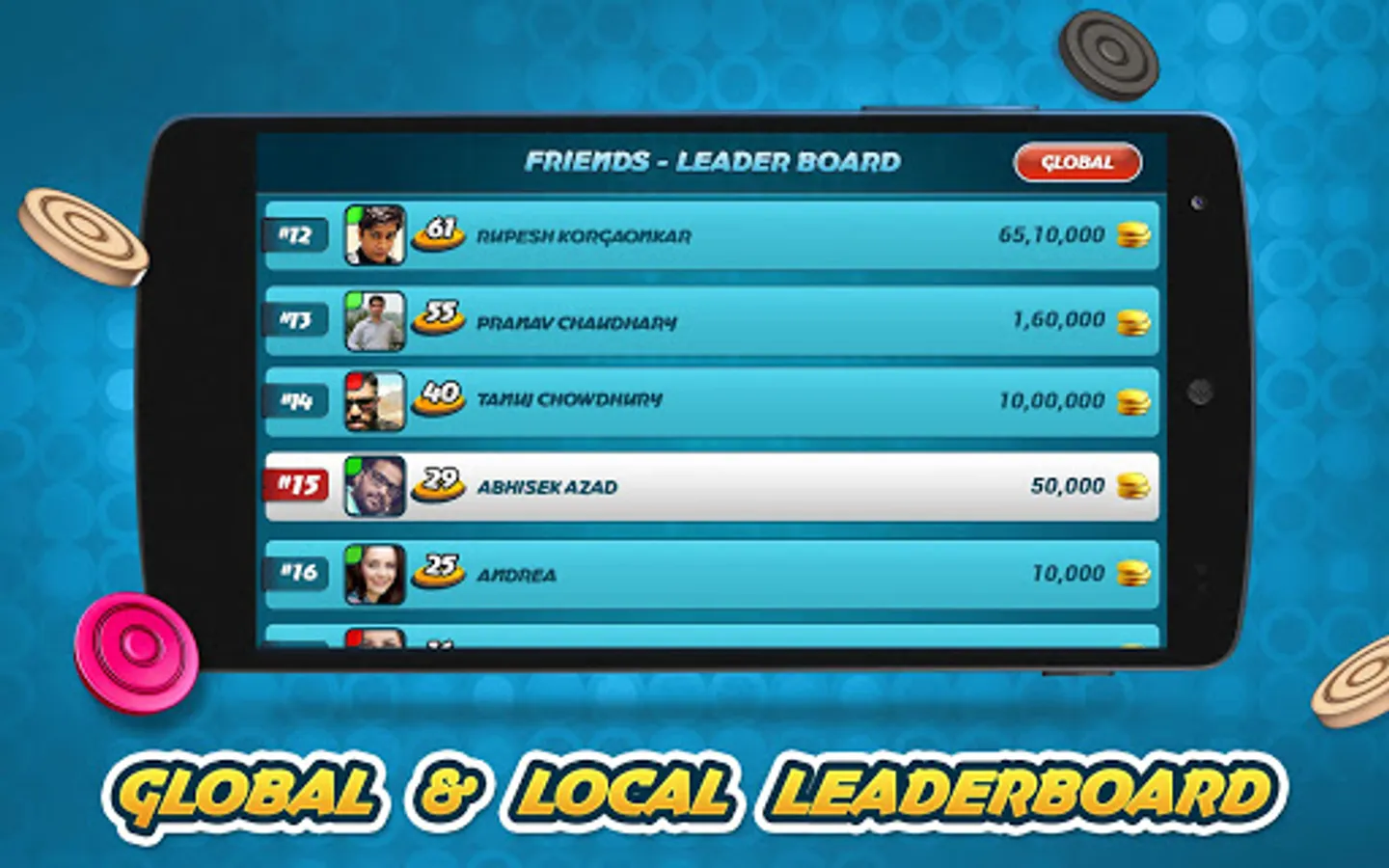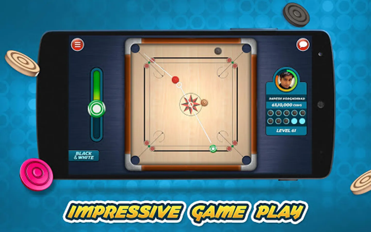 - Play with world – Take down real players anytime, anywhere in a thrilling carrom match.