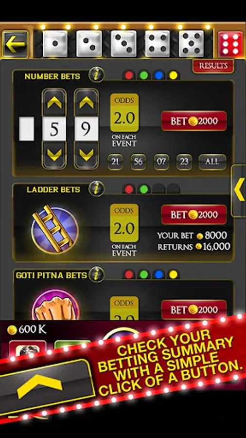 Player has 3 new options of bets (Number - Ladder - Goti Peetna)