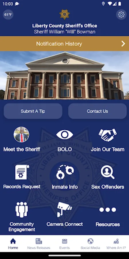 The Liberty County Sheriff’s Office mobile app is an interactive public communication platform created to help LCSO communicate and partner with area residents. The mobile app allows our team to send urgent emergency push notifications to residents about incidents and events that can help protect your family’s safety. Citizens and visitors can also connect directly with the Liberty County Sheriff’s Office through the inmate search feature, providing anonymous tips via the Submit a Tip feature, reporting crimes, request records and reports, and other interactive features.