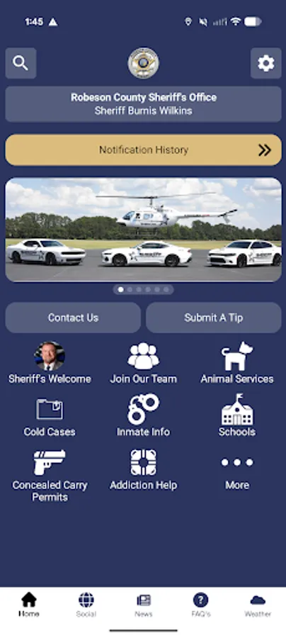 The Robeson County Sheriff’s Office mobile application is an interactive app developed to help improve communication with area residents. The Robeson County NC Sheriff’s app allows residents to connect with the Robeson County Sheriff’s Office by reporting crimes, submitting tips, and other interactive features, as well as provides the community the latest public safety news and information. The app is another public outreach effort developed by the Robeson County NC Sheriff’s Office to improve communication with county residents and visitors. This app is not intended to be used to report emergency situations. Please call 911 in an emergency.