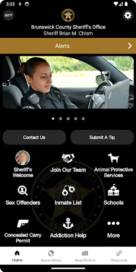 The Brunswick County Sheriff's Office mobile application is an interactive app which will help improve our communication with Brunswick County residents, businesses, and visitors. Information will include, but not be limited to contact information, news, emergency alerts, local weather, inmate search, sex offenders, and Most Wanted. Citizens may submit a crime tip directly through the app, as well as see and share social media posts. By empowering people through technology, the Brunswick County Sheriff's Office will be able to better ensure the public safety of our county.