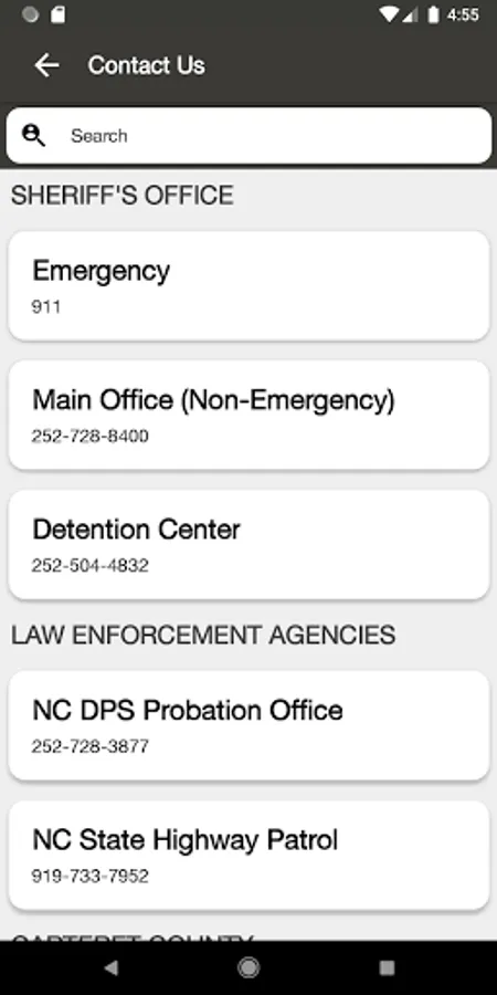 The Carteret County Sheriff’s Office mobile application is an interactive app developed to help improve communication with area residents. The Carteret County Sheriff App allows residents to connect with the Carteret County Sheriff’s Office by reporting crimes, submitting tips, and other interactive features, as well as providing the community the latest public safety news and information.
