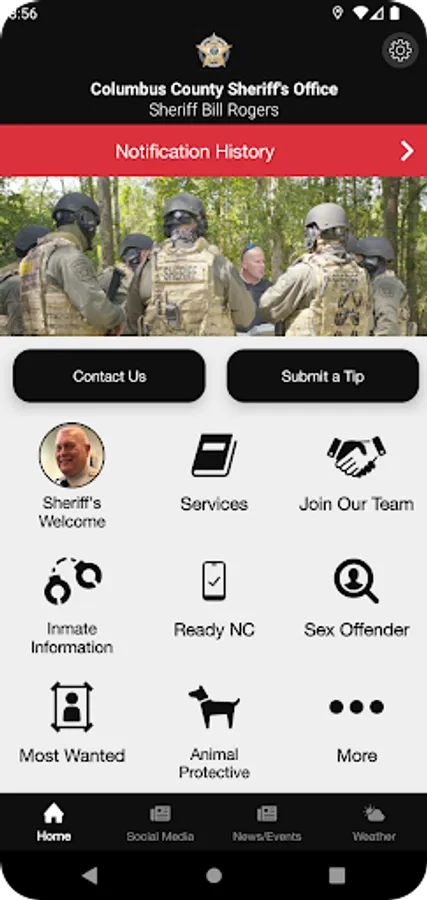 The Columbus County Sheriff's Office mobile application is an interactive app which will help establish communication with the citizens of Columbus County. Information will include, but not be limited to contact information, news, emergency alerts, local weather, inmate search, sex offenders, and Most Wanted. Citizens may submit a crime tip directly through the app, as well as see and share social media posts.
